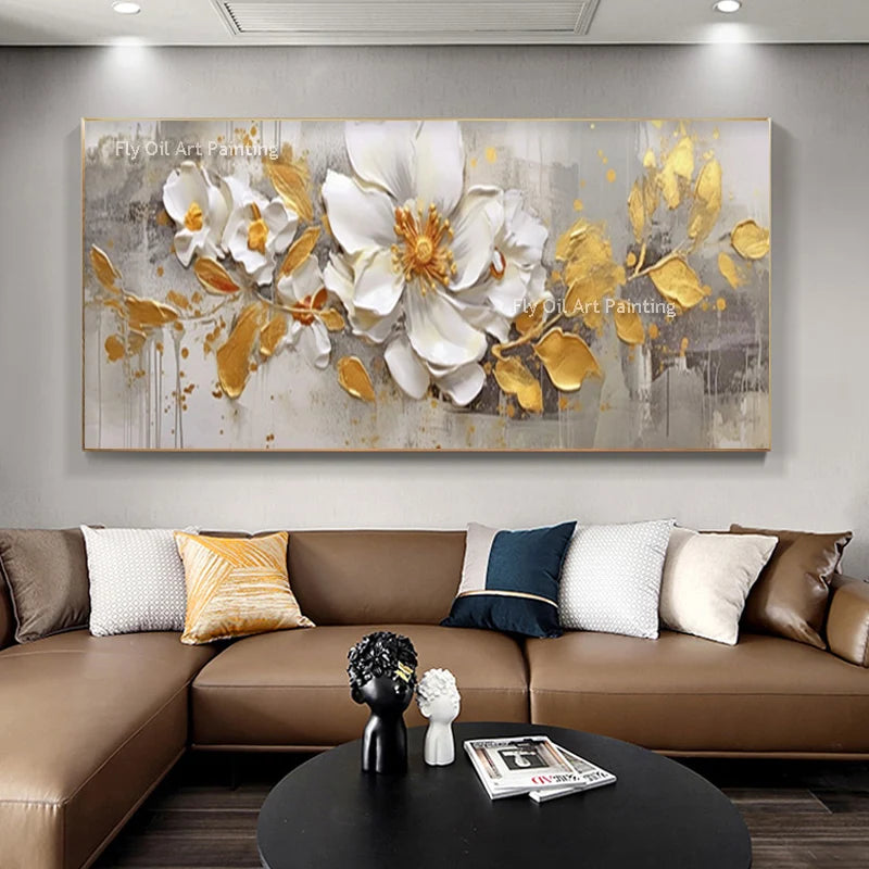 Handmade 3D Gold Flower Oil Painting – Abstract Knife Canvas Wall Art